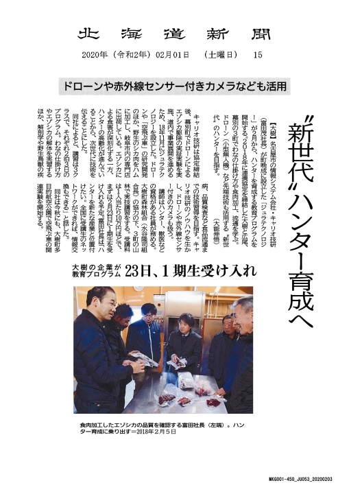 2020年2月1日(土)新世代ハンター育成プログラムに関する記事 が北海道新聞に掲載されました。