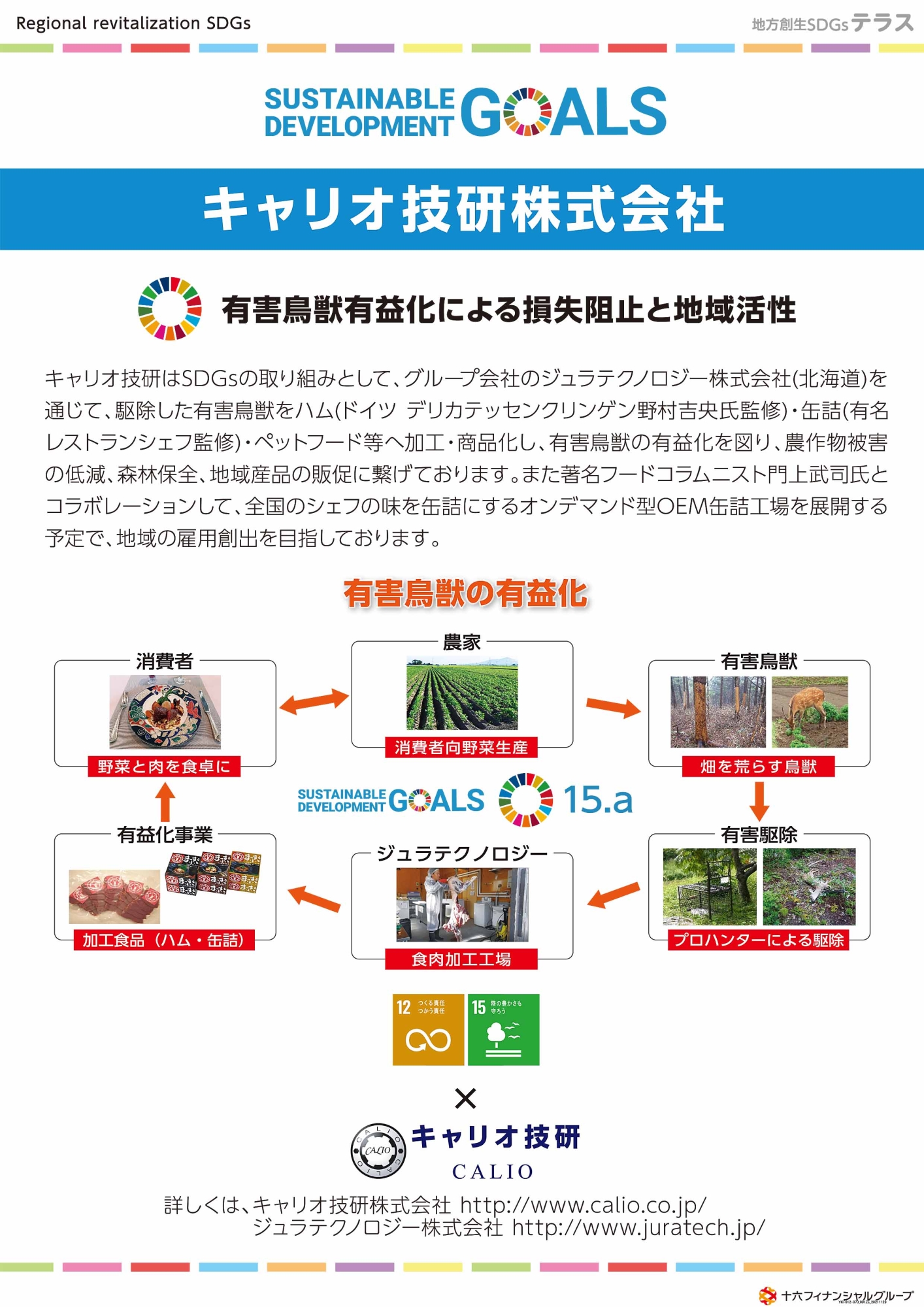 北海道十勝地方で駆除した有害鳥獣をハム・缶詰・ペットフード等へ加工・商品化し、有害鳥獣の有益化を図り、農作物被害の低減、森林 保全、地域産品の販促に繋げております。