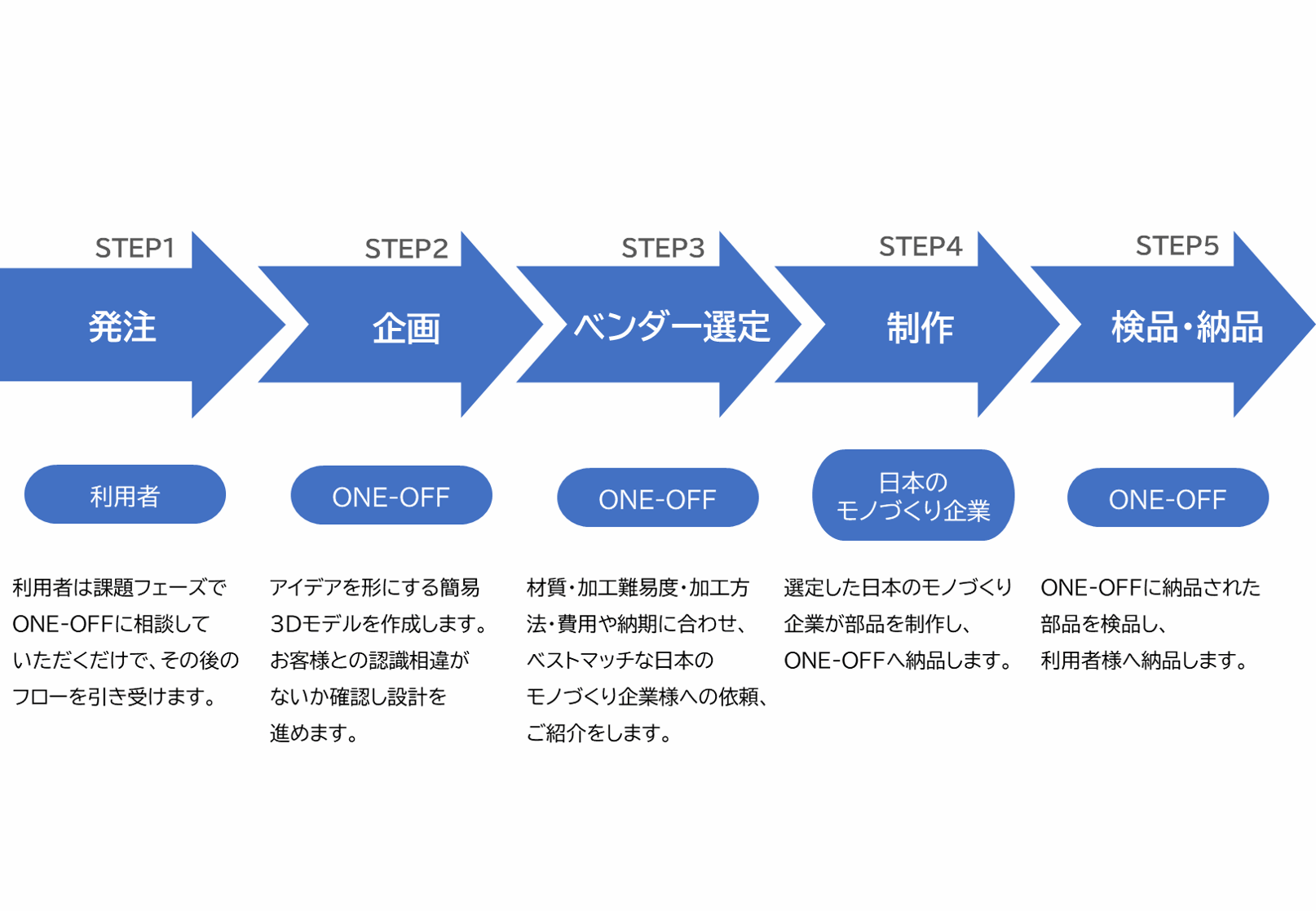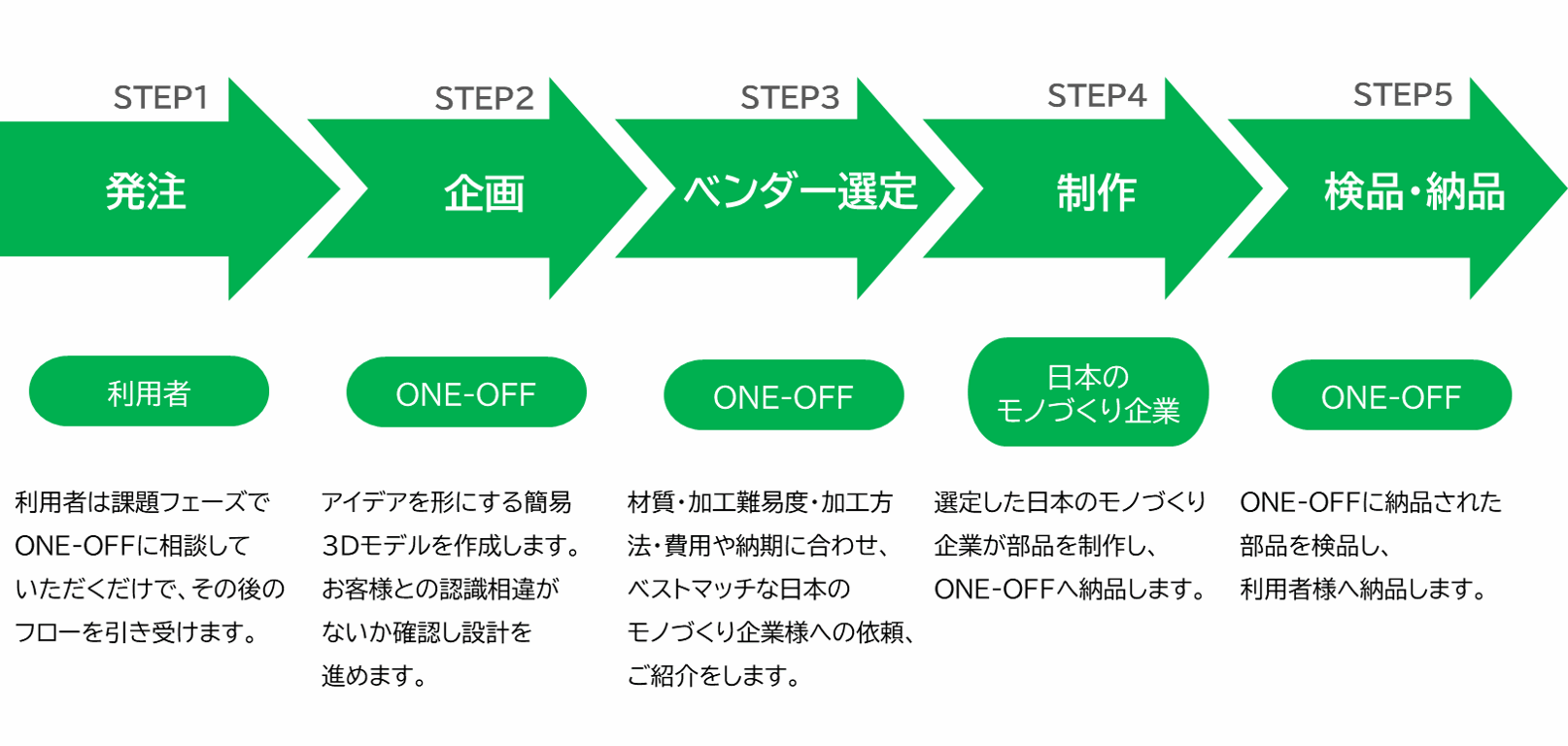 ONE-OFFがサポートし、愛知県有数のモノづくり企業から選定します。