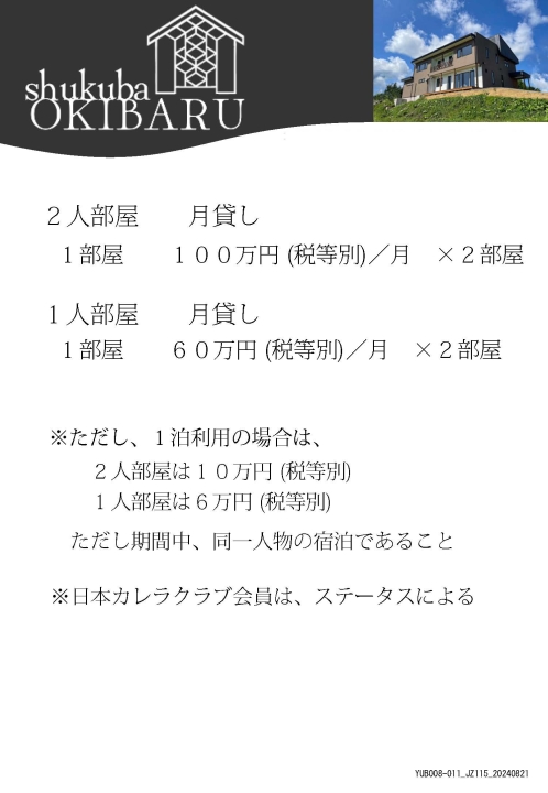 十勝宿場おきばるの宿泊料金です。